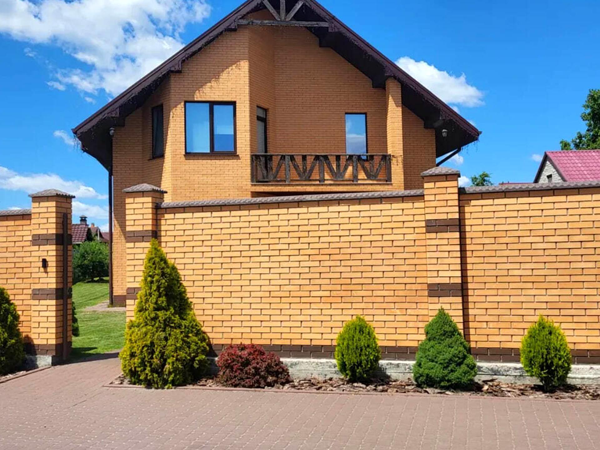 – Забір з цегли, автоматичні ворота