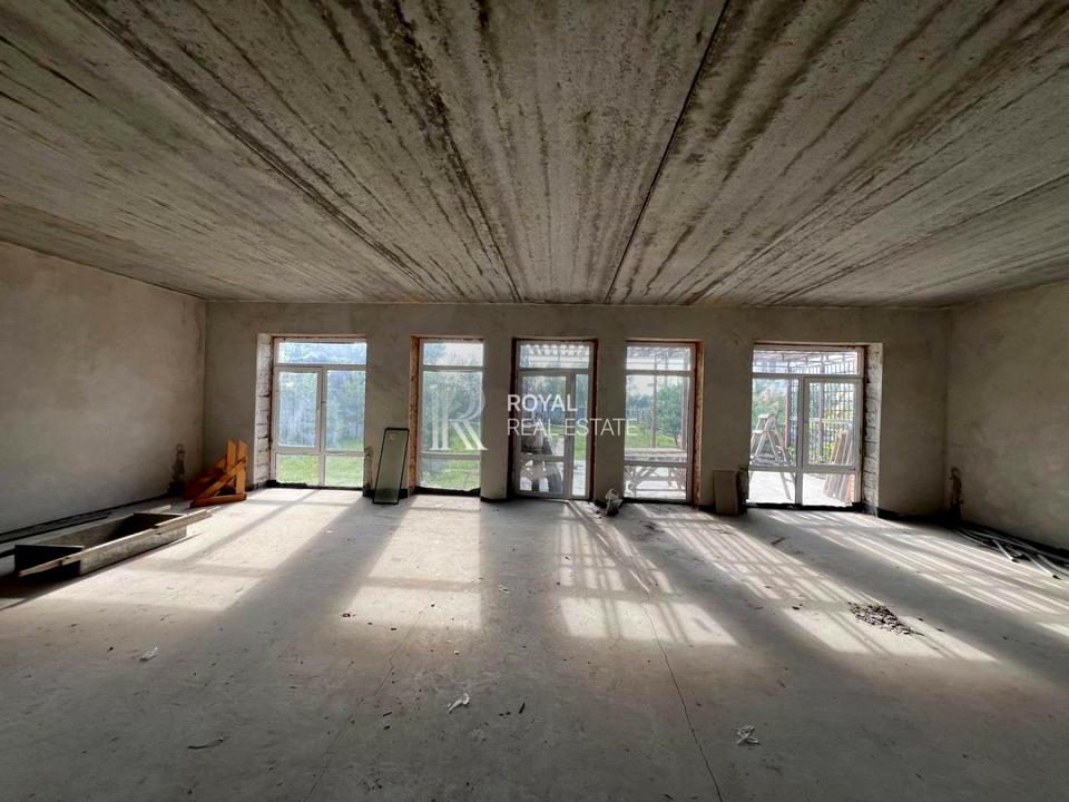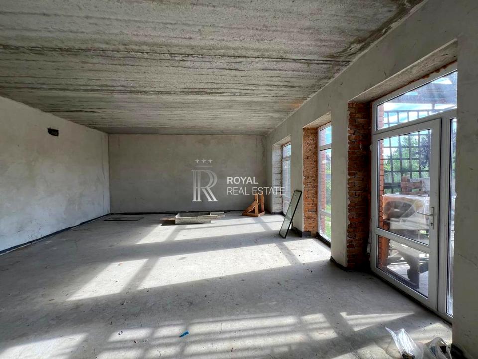 На першому поверсі велика зала з кухнею(приблизною площею біля 40кв.м), з виходом на велику терасу.