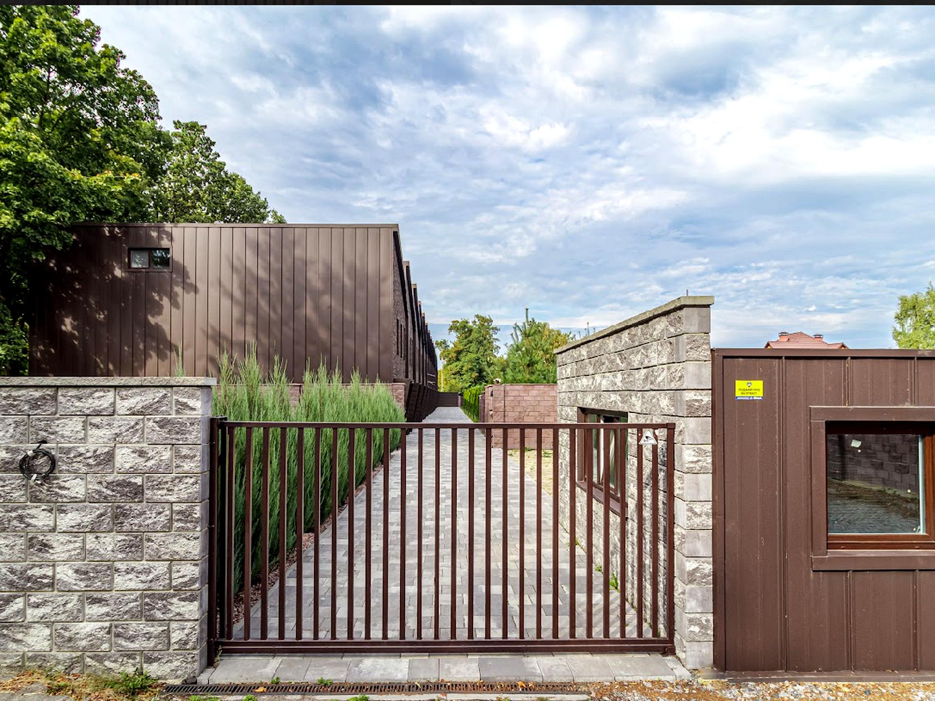 У дворі є басейн, дитячий майданчик, парковка, зарядка для електроавто. Ділянка 1,5 сотки гармонійно зливається з великим лісом. Чудове розташування — у живописному місці, що за 20 км від столиці по трасі Київ-Бориспіль.