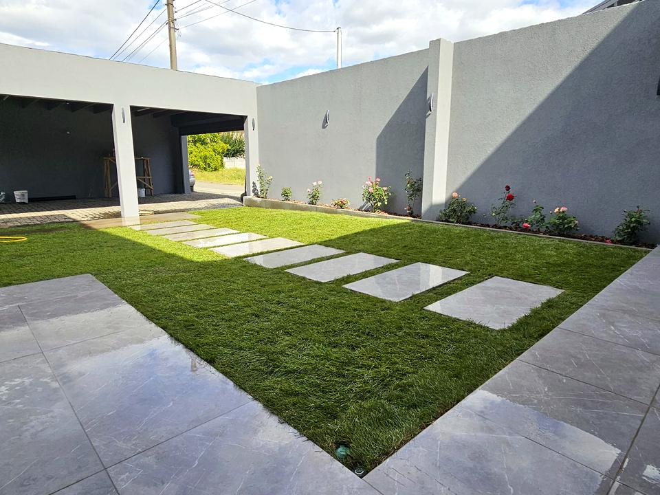 У дворі добротно обладнаний гостьовий будинок із лазнею, купіллю, каміном, піччю і просторою кухнею, у центрі двору зручно облаштоване місце для сидіння компанії навколо видовищного вогнища та басейн із білого мармуру з програмованою турбованою протитечією SWIMEO для активного плавання. Доріжки у дворі вимощені з гранітної плитки.