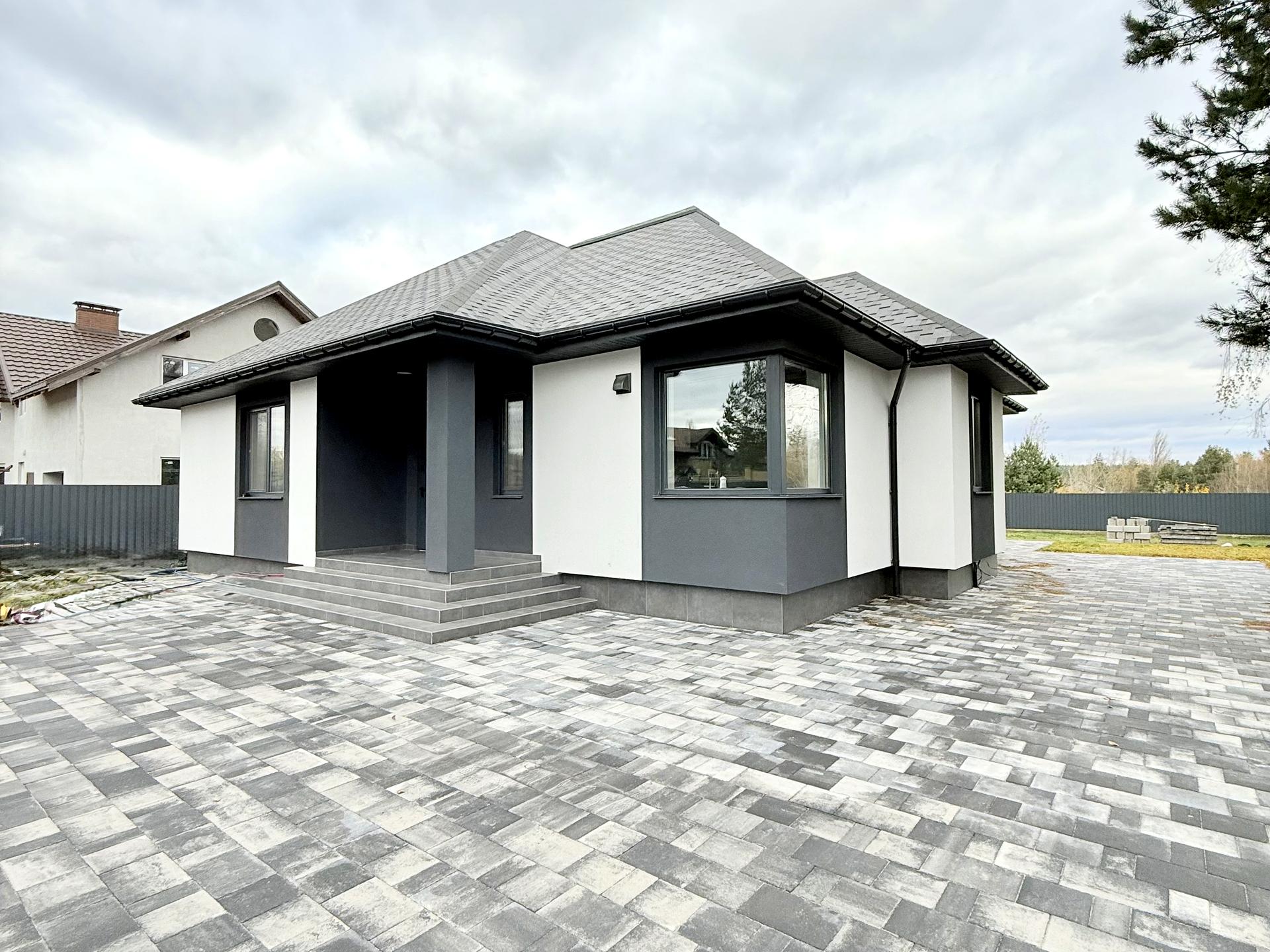 Одноповерховий будинок з додатковим горищем, простора кухня-вітальня з панорамним вікном та виходом на подвір'я, 3 спальні, 2 санвузла, господарське приміщення, просторе подвір’я.