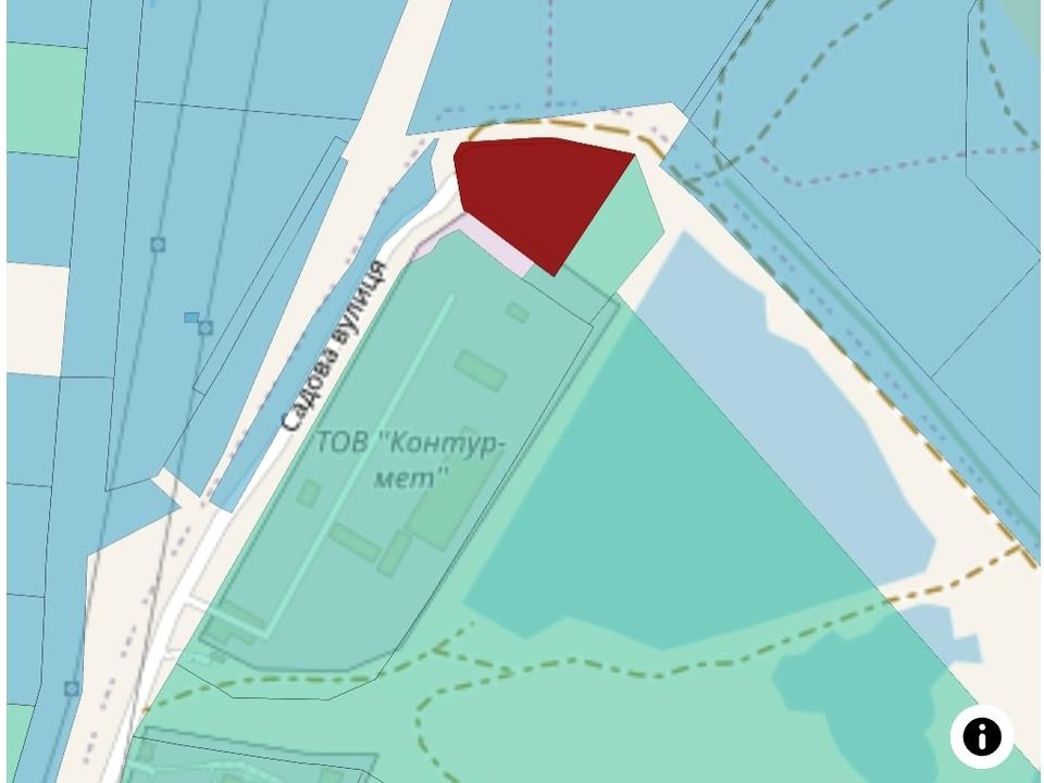 Земля розташована поруч з промисловою зоною. Частина ділянки (40 соток) поділена на дві ділянки: 38 соток під промисловість, 2 сотки залишено під ОСГ.
