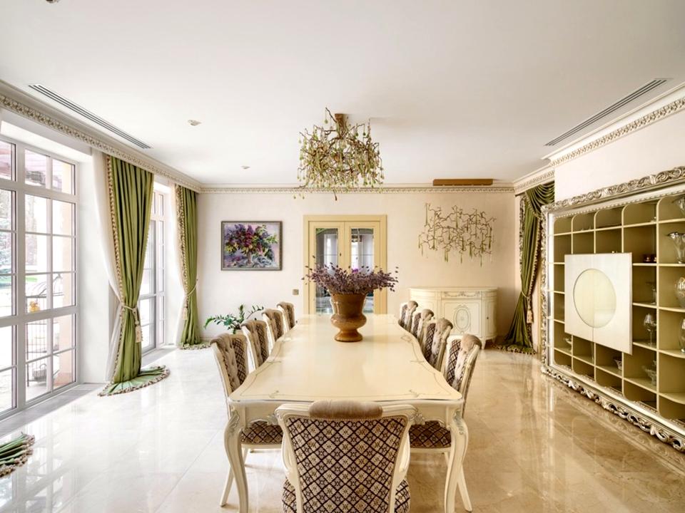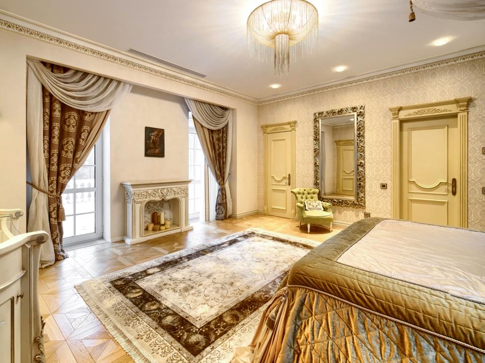 Основний будинок розпоряджається 4 спальнями, великою вітальнею з каміном, гральною кімнатою, кухнею, 9 санвузлами, домашнім кінотеатром, кімнатами для працівників і допоміжними приміщеннями. Окремо розташований SPA-центр з хамамом, сауною, масажним кабінетом і 2 купелями.