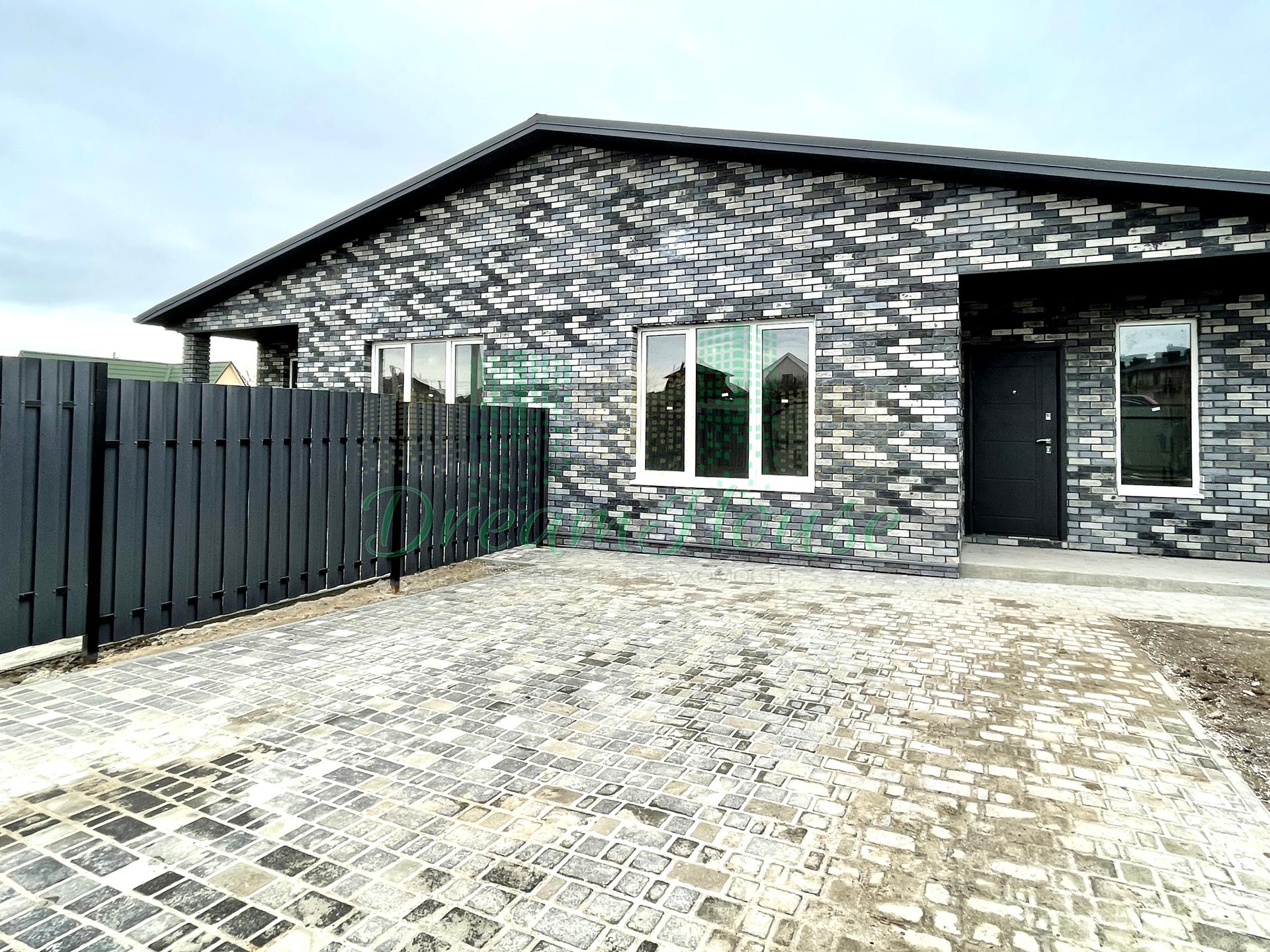 Дом, 1 этаж, 3 комнаты. Материал стен – кирпичный, фундамент дома – железобетон, материал перекрытий – дерево. Подъезд к дому – асфальт. Площадь участка 3 сотки. Высота потолков 3 метра. Вид из окон во двор, на парк. Планировка комнат Раздельная. Газ на улице. Холодная вода - скважина, горячая вода - электрический бойлер. Отопление котел электрический. Совместный санузел, туалет/ванна. Сантехники нет. Разводки труб нет. Входная дверь бронированная, нет лестницы. Нет покрытия полов, подогрева полов нет. В доме нет балконов. Тип кухни - кухня-студия. Окна металлопластиковые, новые. Покрытие крыши - металлочерепица. Есть ограждение. Нет подвала. В доме есть Счетчики. Дом построен в 2022 году. Своя канализация. На территории участка есть огород. У дома 1 собственник. Общее состояние дома - От строителей (с отделкой). Автопарковка, Возможность прописки. Рядом есть школа, детсад, остановки, супермаркет, парк, речка/озеро. Дом приватизирован. Торг уместен, Срочно, Свободна. Без комиссии