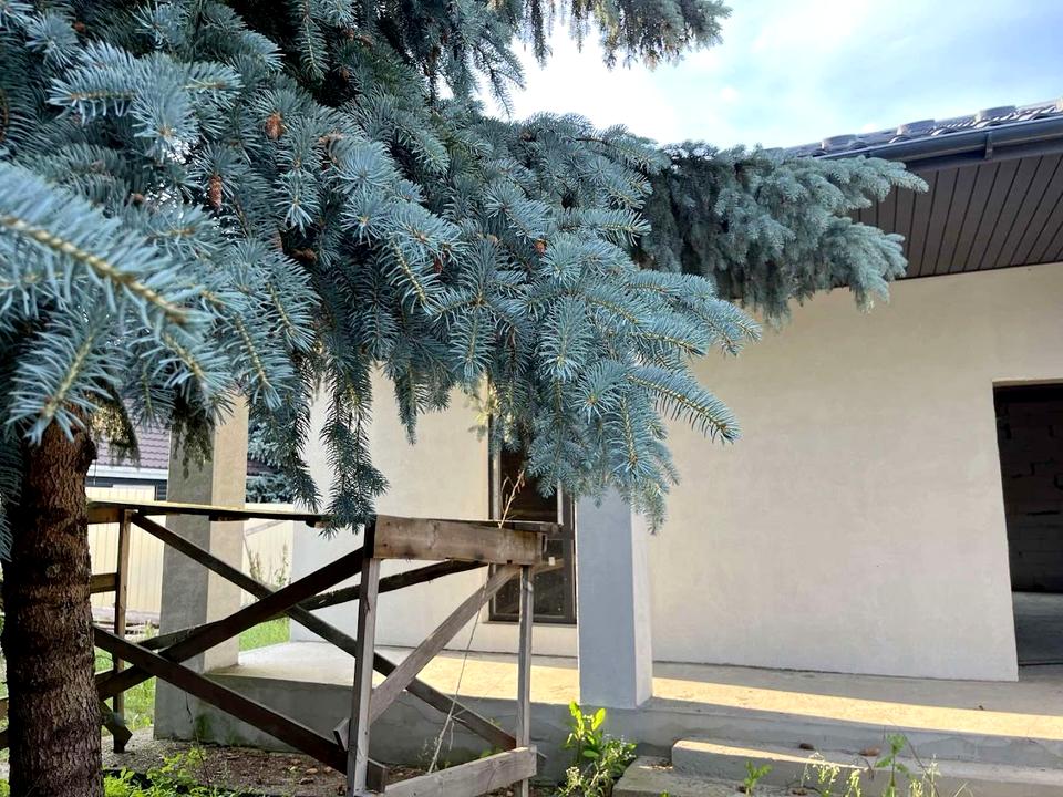 Будинок знаходиться на 5 сотках ( є можливість придбати ще 5 соток поряд). Побудований у стилі "шале", одноповерховий з терасою та камінним залом!