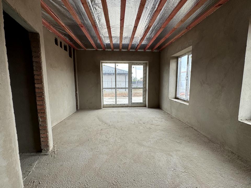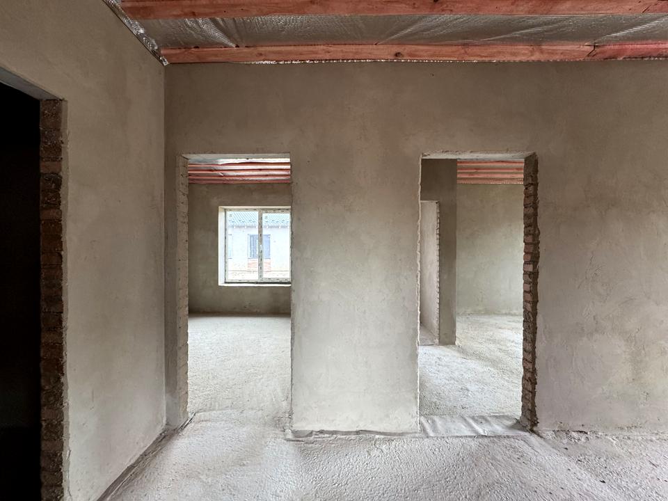 Стіни: зовнішні з повнотілої цегли 380 мм., перегородки з цегли 120мм.,стіни цементно- вапняна штукатурка, стяжка підлоги- лазерна.Стеля: дерев’яні балки підшиті дошкою та паробар’єром. Вікна: 6-ти камерний профіль, 2-кам.склопакет.