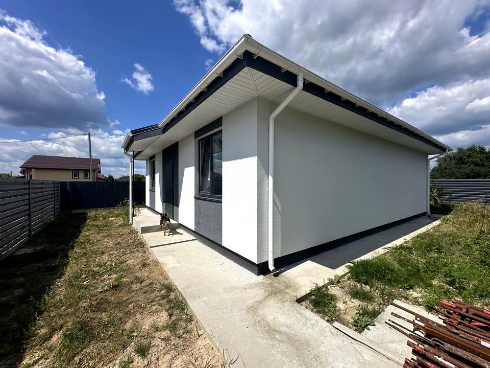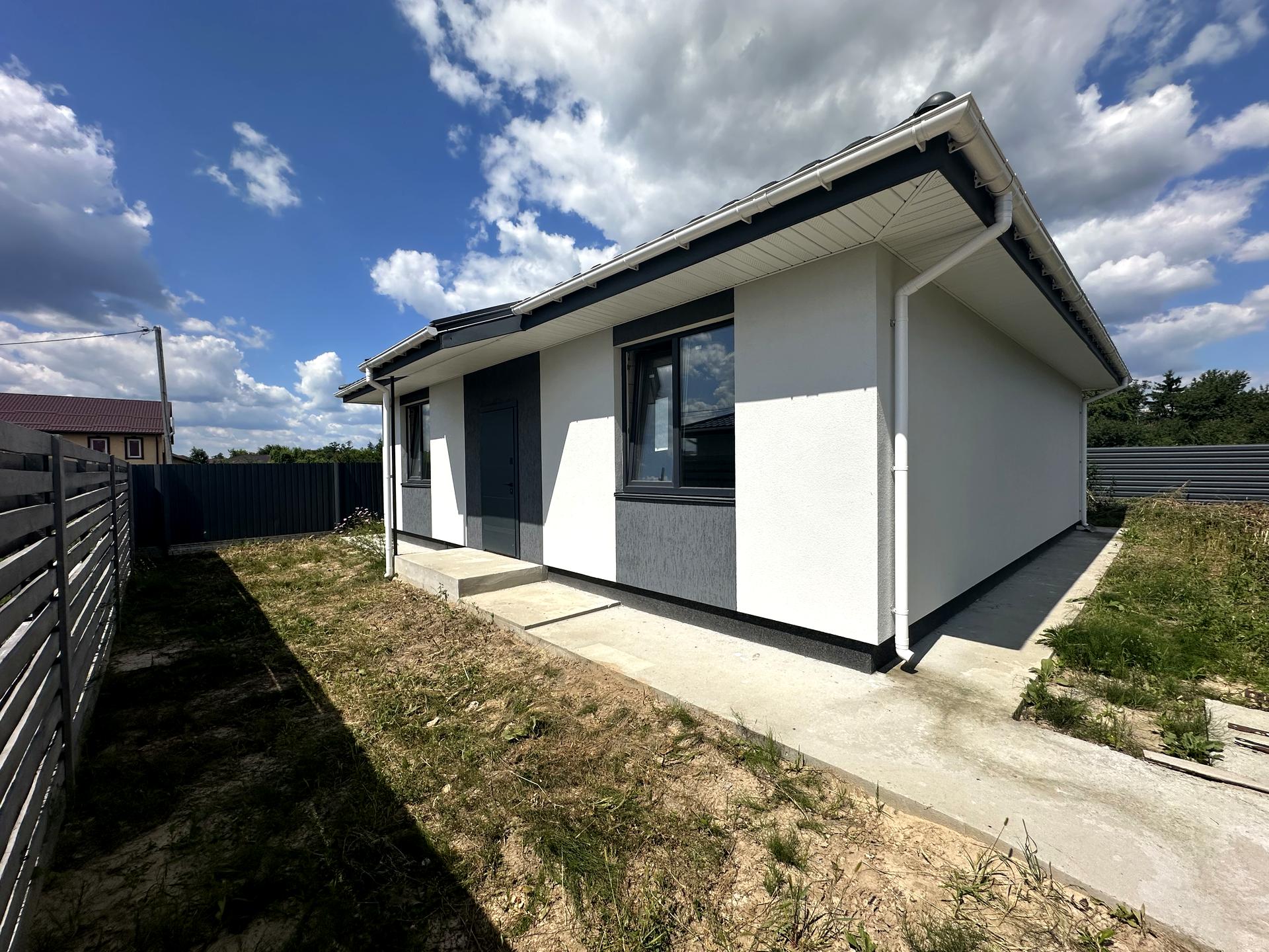 Дом, 1 этаж, 3 комнаты. Материал стен – газоблок, фундамент дома – железобетон. Подъезд к дому – асфальт. Площадь участка 4 сотки. Высота потолков 3 метра. Вид из окон во двор. Планировка комнат Раздельная. Газ на улице. Холодная вода - скважина, горячая вода - электрический бойлер. Отопление котел электрический. В доме 2 раздельных санузла, туалет/ванная/душ. Сантехника новая. Разводки труб нет. Входная дверь бронированная, нет лестницы. Нет покрытия полов. В доме нет балконов. Тип кухни - кухня-студия. Окна металлопластиковые, новые. Покрытие крыши - металлочерепица. Есть ограждение. Нет подвала. В доме есть . Дом построен в 2025 году. Своя канализация. На территории участка есть сад, огород. У дома 1 собственник. Общее состояние дома - Без ремонта. Автопарковка, Возможность прописки, охрана. Рядом есть школа, детсад, остановки, супермаркет, парк, речка/озеро, лес. Дом приватизирован. Срочно, Прямая продажа, Свободна, Возможна рассрочка. Сантехника новая. Интернет оптоволоконный. Наружное утепление стен. Работает без света - вода, интернет. Без комиссии
