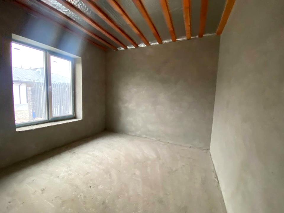 У будинку вже виконана цементно-піщана штукатурка стін, чистова стяжка підлоги, сходи бетонні. Встановлені 2-камерні вікна та двері. До будинку заведені усі комунікації: центральні водопостачання та водовідведення, 7 кВт електрика.