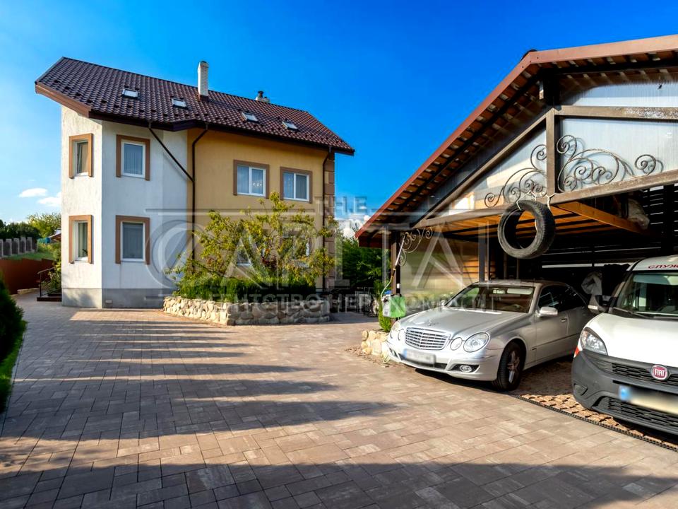 Паркування – навіс на 2 авто, 3 місця на подвір’ї та гостьовий паркінг зовні.