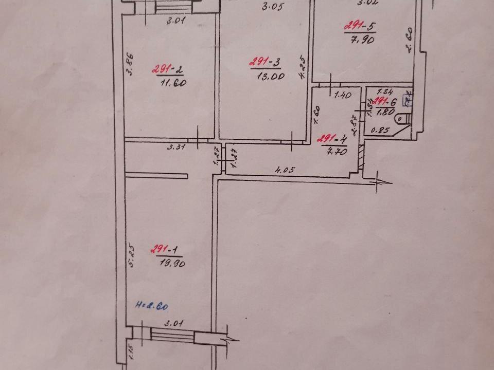 Формат приміщення: три окремі кімнати, одна кімната прохідна (зона прийому/хол), суміжний санвузол, коридор та балкон.