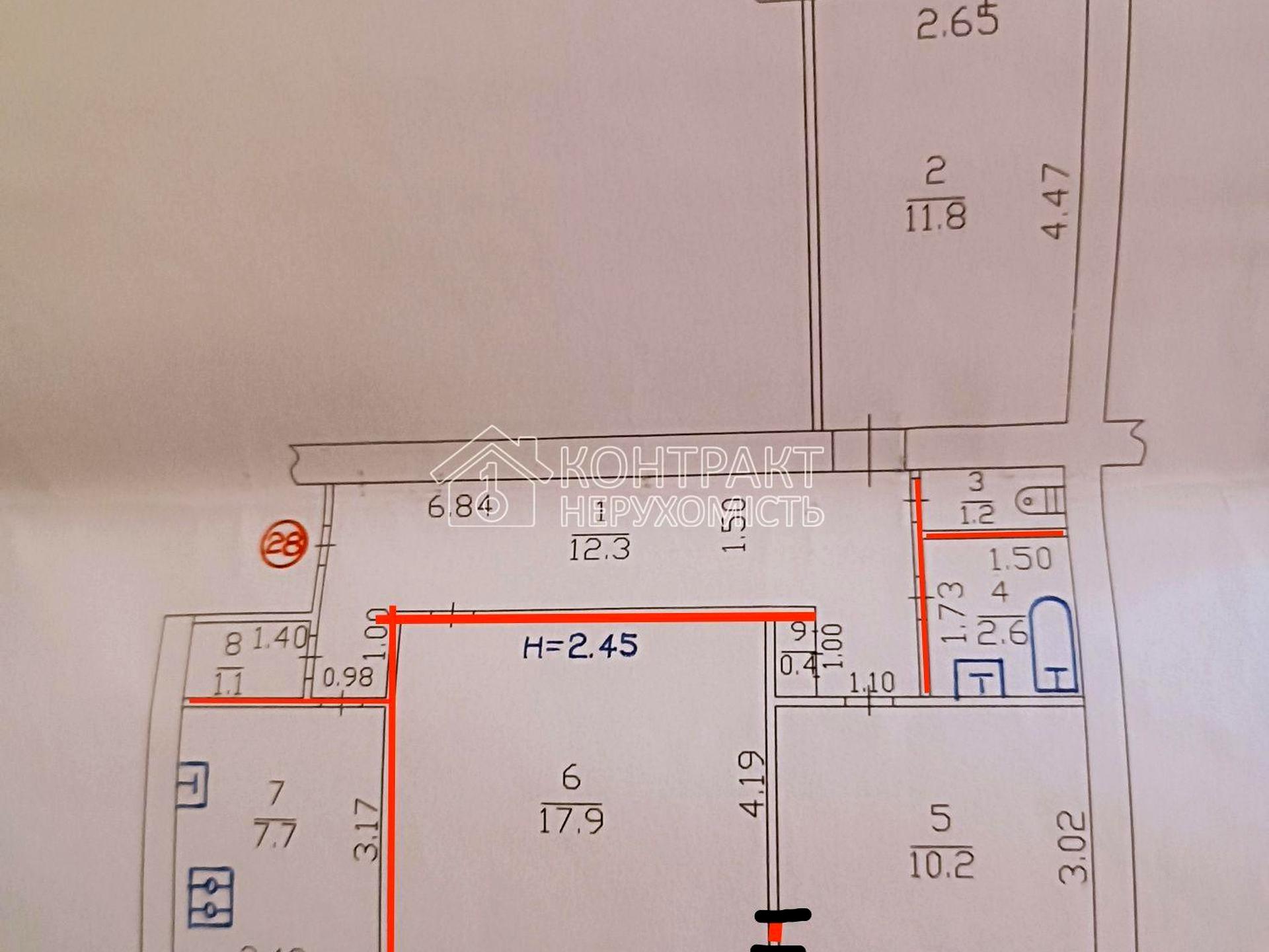 В квартире 3 комнаты, высота потолков 2.5 метра, Технологія будівництва - Цегляна. Общее состояние квартиры - Без ремонта. Комиссия за услуги 5 %