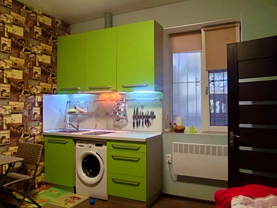 В квартире 1 комната, высота потолков 2.6 метра, Технологія будівництва - Цегляна, Тип будинку - Хрущівка. Газа нет, кухонная плита электрическая. Балкона нет. В квартире есть Телевизор, Кондиционер, Стиральная машина, Душевая кабина, Холодильник, Микроволновка. Общее состояние квартиры - С ремонтом. Безбарьерность: вход в дом на уровне земли. Горячая вода - электрический бойлер. Количество санузлов: 1. Интернет беспроводной. Работает без света - вода, отопление, интернет. Владелец соглашается продать по программе єВідновлення. Тип кухни - кухня-студия. Количество спален: 1. Комиссия за услуги 825 $