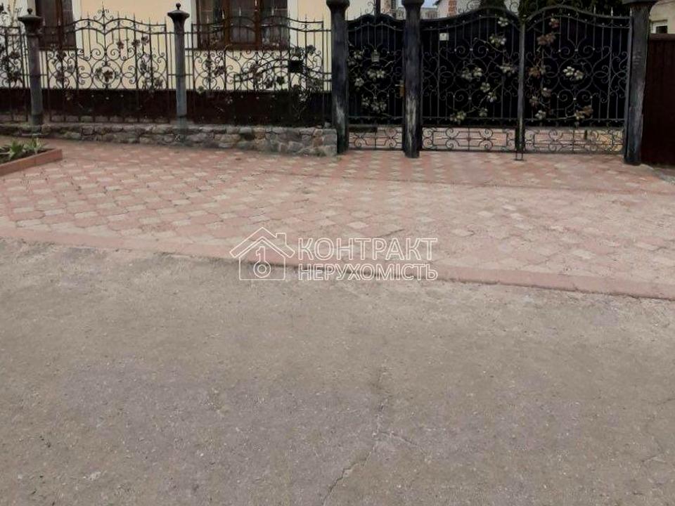 Територія доглянута, плитка, газон, квіти, дерева.