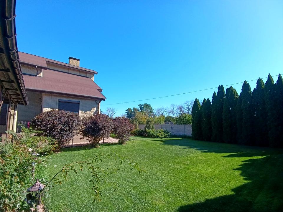 Ділянка 15 соток, огороджена. Є гараж, тераса, підвал. Доглянутий газон. Висаджені туі по периметру.