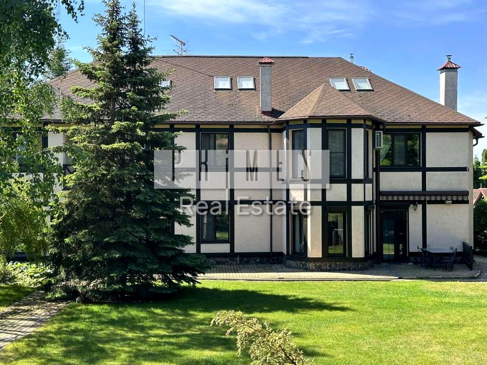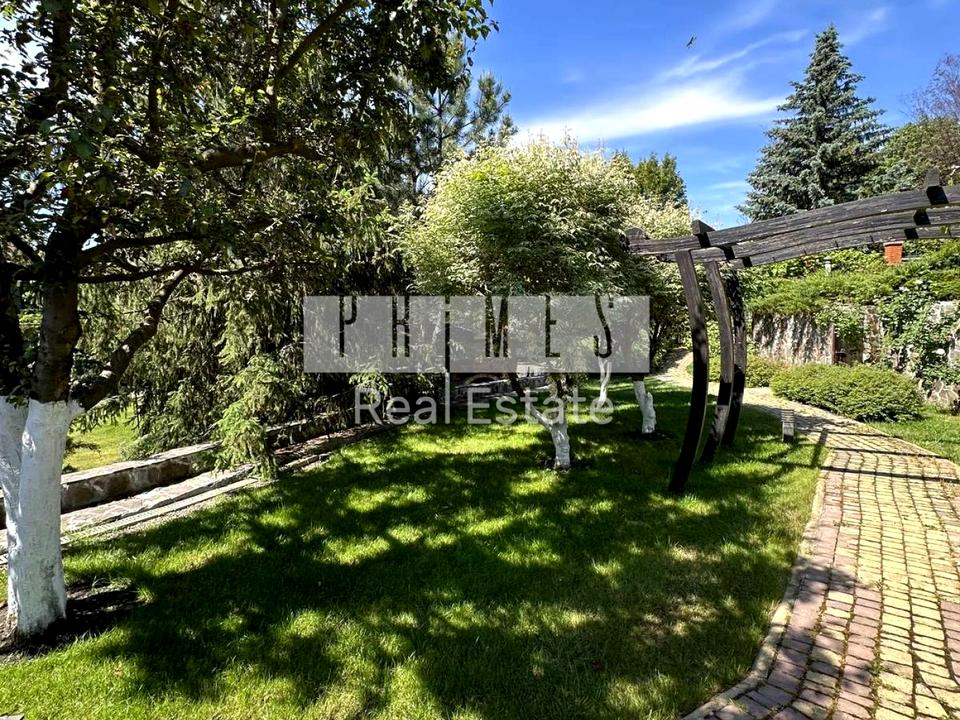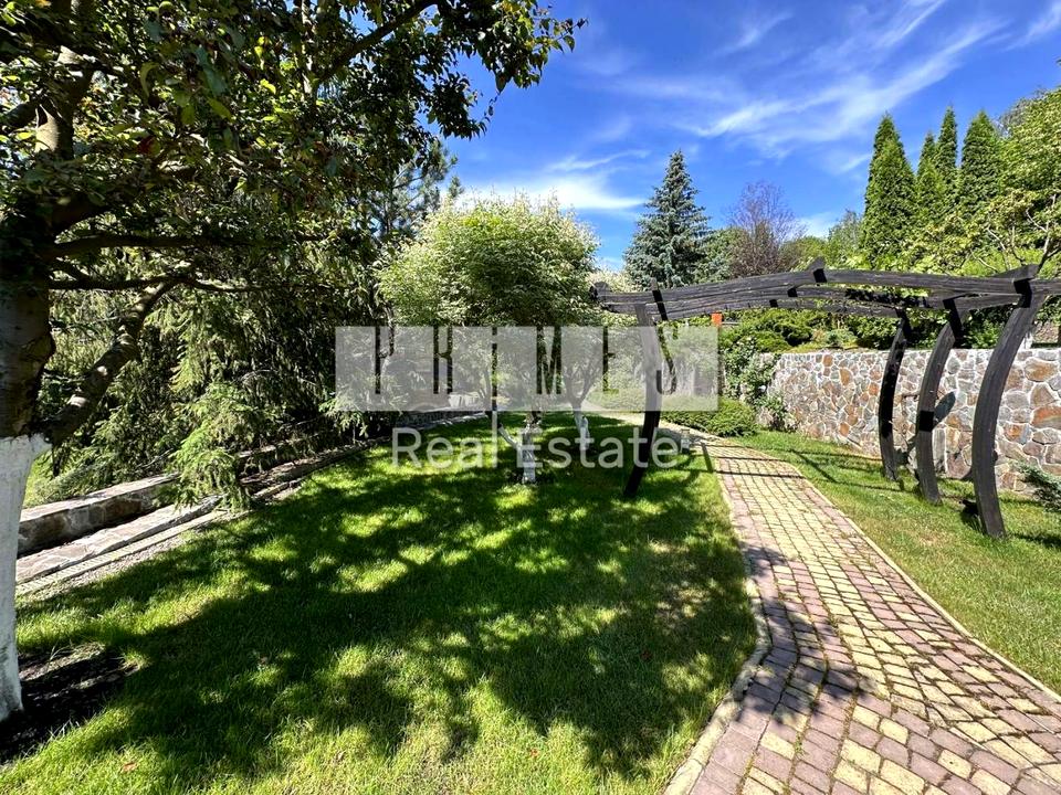 Закрите з охороною містечко 548 кв.м.а німецькому стилі.На першому поверсі ПОКАЗАТИ БІЛЬШЕ будинку розташовані:камінний зал, гардеробні, кухня, сан.вузол, сауна, басейн, кімната відпочину,гараж на 2 авто.На другому поверсі розташовані 4 кімнати з сан.вузлами, гардеробами, кабінет.В будинку є також винний льох.Окремо на території розташований з зрубу гостьовий будинок з терасою.В будинку 3 кімнати, вітальня, сан.вузол.Ділянка 25 соток з шикарним ландшафтним оформленням.Ділянка розбита на три рівні :На першому зона барбекю вздовж ділянки дорослі берези, ялинки, туї ,голубі ялинки та декоративні дерева.Другій рівень Виноградник ,зона відпочинку з гойдалкою та квітами.На третьому рівні гостьовий будинок та фруктовий садок.В садку є черешня, вишня, яблуні, абрикоси.На всіх трьох рівнях газон з автополивом та освітленням.Є бомбосховище.Власна скважина для води ,скептик, газ, власний трансформатор