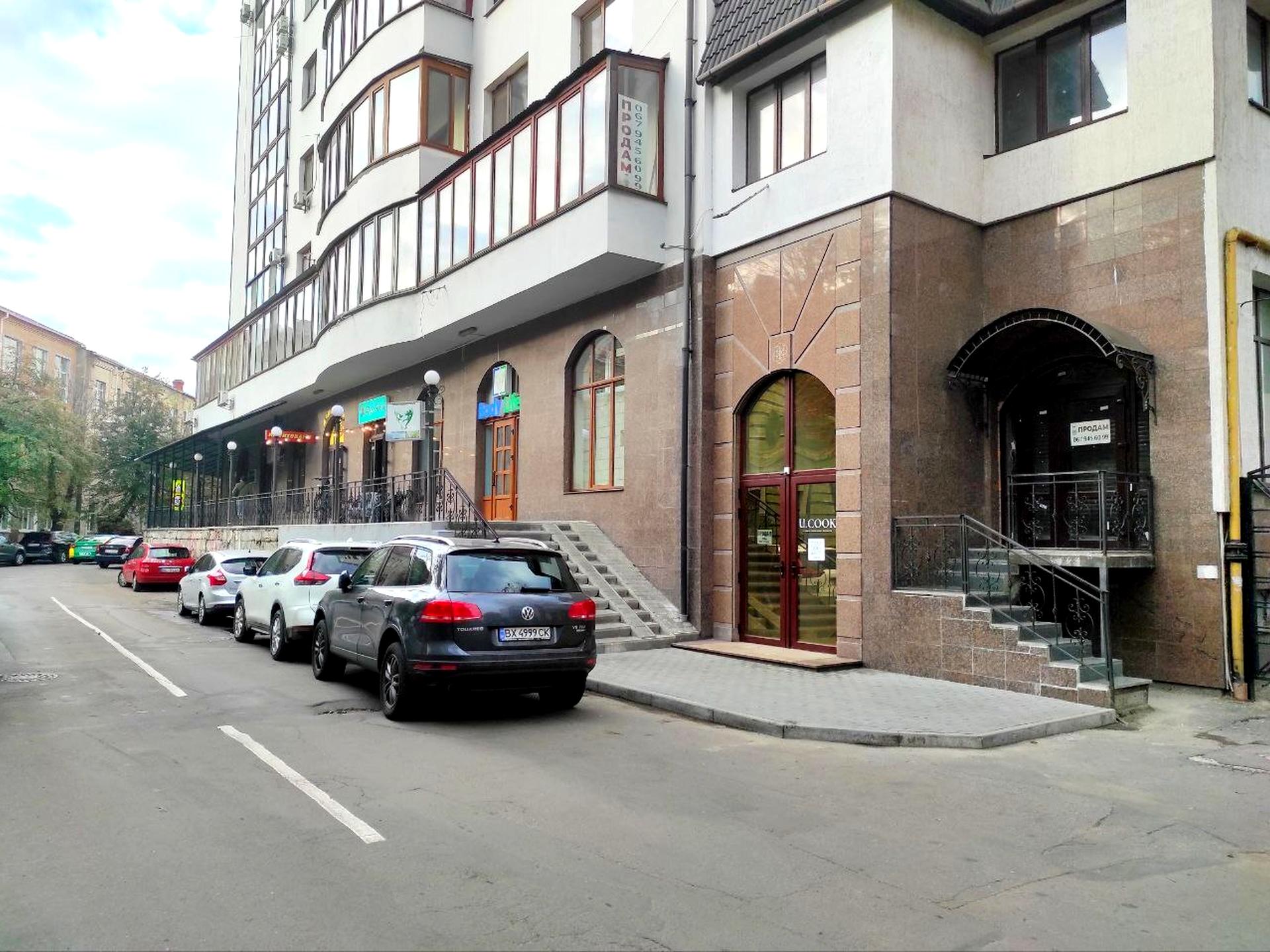 Продам комерційне приміщення площею 293.2 м.кв. в центрі міста вул. Проскурівська 45, фасадне на вул. Володимирську, цокольне приміщення є два входи зі сторони вулиці Володимирська і з паркінга. Висота стелі 3.75 і 2, 89 м. Приміщення в стані від забудовника як на фото. Комунікації – світло, вода (поки не підключені). Планувалося під ПАБ. Призначення: під заклад громадського харчування.