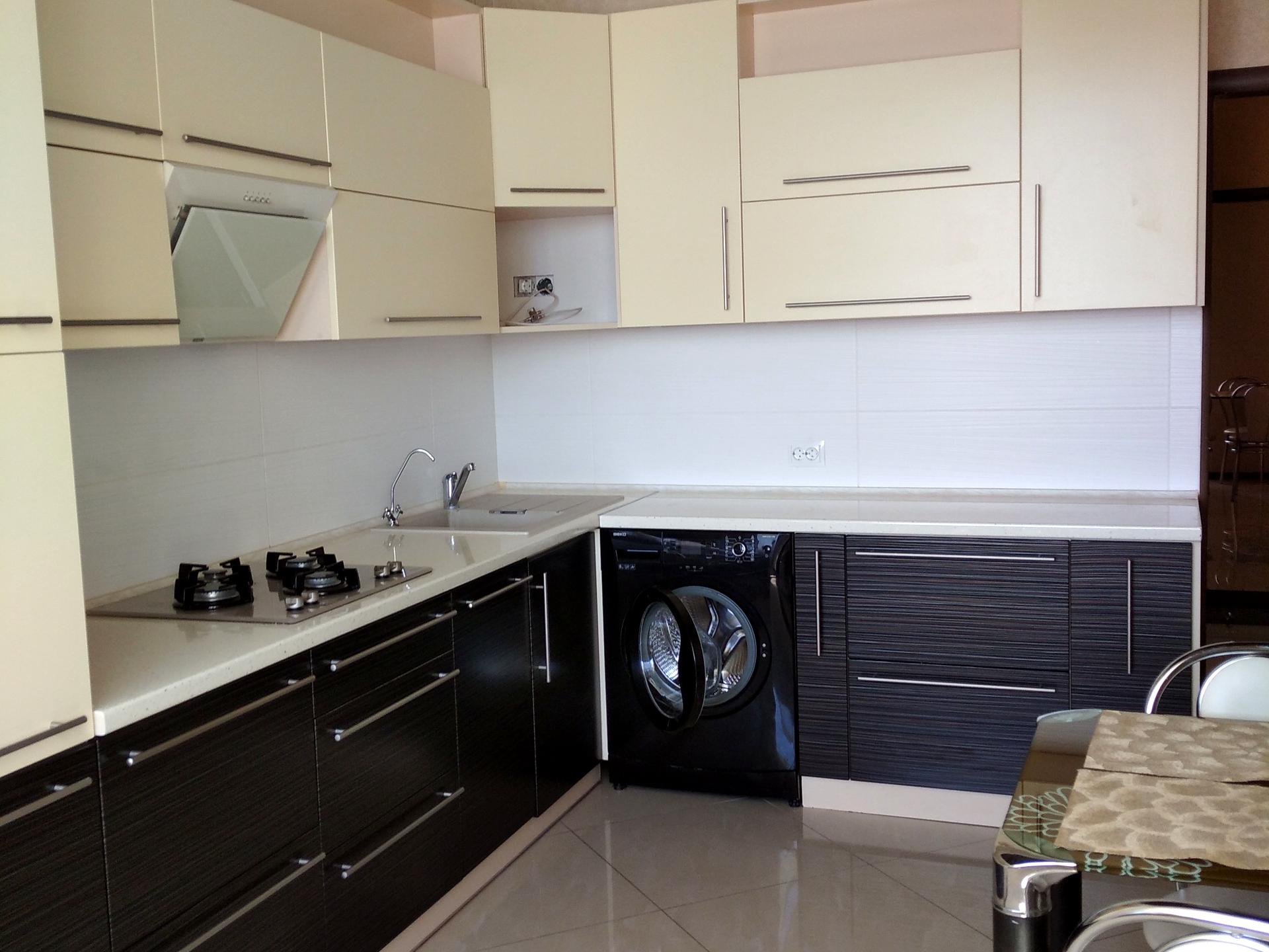Сучасна кухня з посудомийною машиною та кавоваркою.