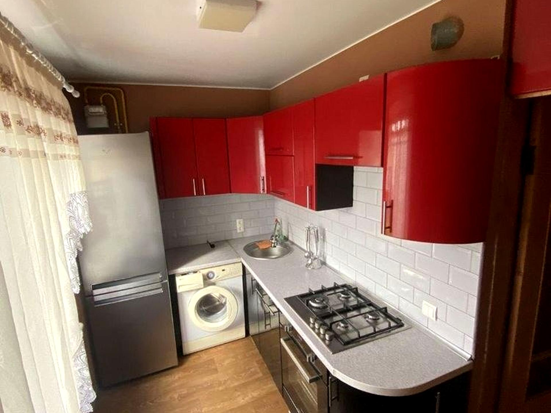 Вбудована кухня з усією необхідною технікою.