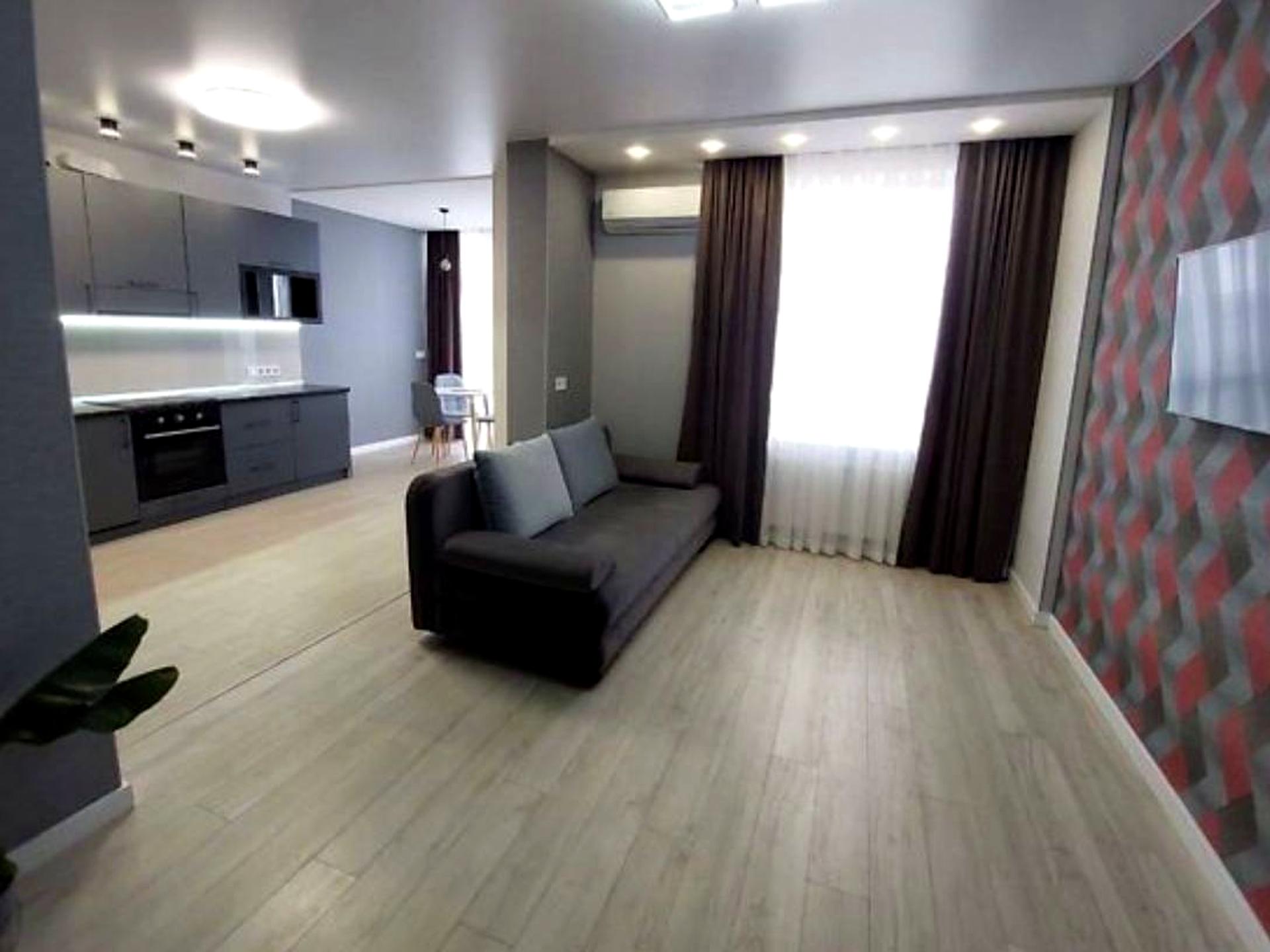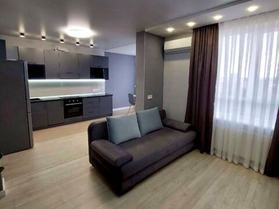 В квартире 1 комната, высота потолков 2.5 метра, Технологія будівництва - Цегляна, Тип будинку - Спец. проект. Есть газ, кухонная плита газовая. Есть 2 балкона. В квартире есть Телевизор, Кабельное ТВ, Утюг, Подогрев полов, Кондиционер, Стиральная машина, Душевая кабина, Холодильник, Микроволновка, Посудомойная машина. Дом построен в 2020 году. Общее состояние квартиры - С ремонтом. Горячая вода - газовый котел. Количество санузлов: 1. Интернет оптоволоконный. Работает без света - вода, газ. Тип кухни - отдельная кухня. Количество спален: 1. Комиссия за услуги 80 %