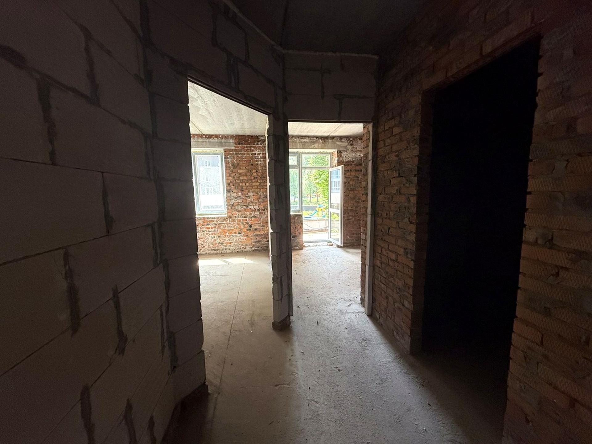 Дом Строится - Украинский кирпич, в квартире 1 комната. Вид из окон во двор. Планировка комнат Раздельная. Совместный санузел, туалет/ванная/душ. Сантехники нет. Нет покрытия полов, подогрева полов нет. Есть балкон. Общее состояние квартиры - От строителей свободная планировка. Автопарковка. Рядом есть школа, детсад, остановки, развлекательные заведения, супермаркет, речка/озеро. Возможна рассрочка. Работает без света - вода, газ, отопление. Без комиссии