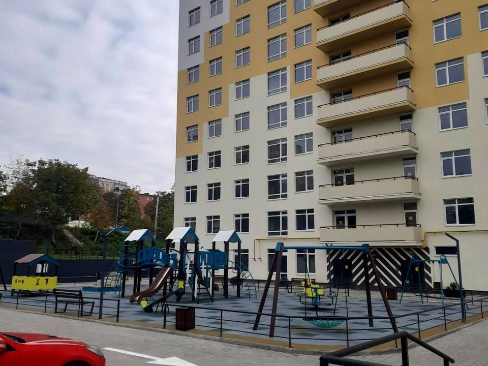 Прибудинкова територія облаштована, підїзди в будинку оздоблені, встановлені ліфти два ліфти (вантажний та пасажирський), великий дитячий майданчик, достатньо паркомісць.