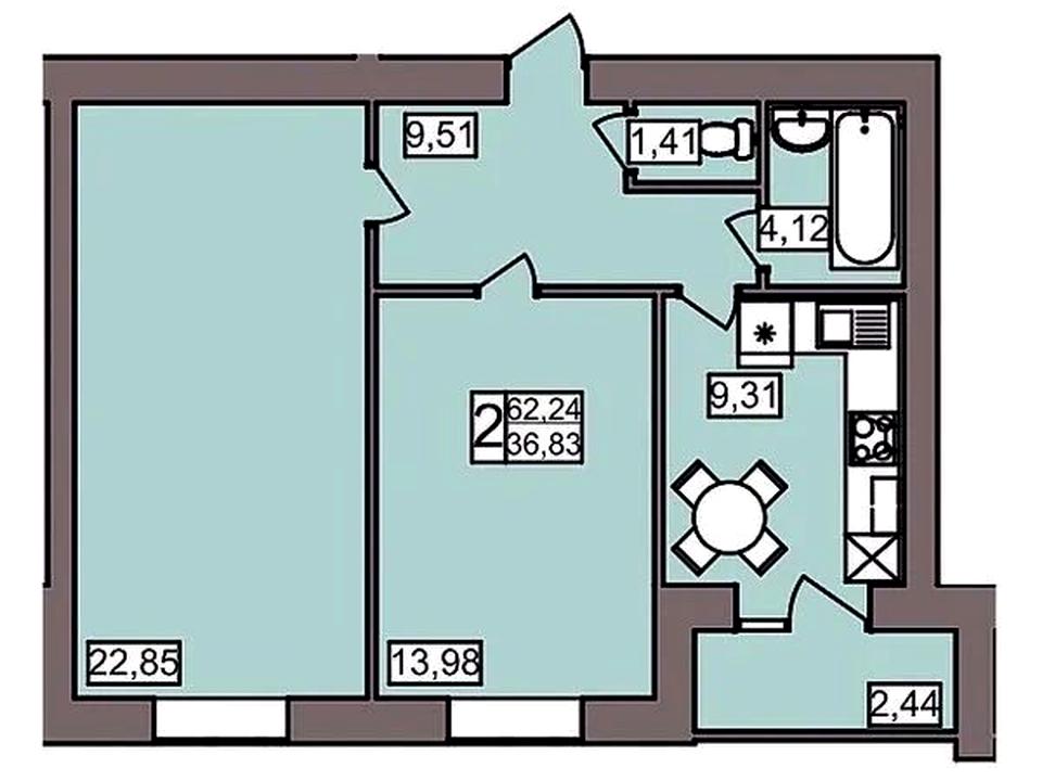 • Площа: 62,23 м2