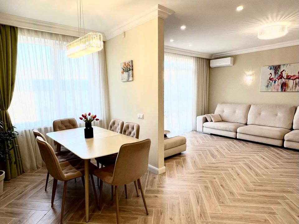 Якісний ремонт - гіпсокартонна стеля, прохідні вимикачі, система Аквастоп, шумоізоляція, охоронна система, тепла підлога всюди - крім спалень.