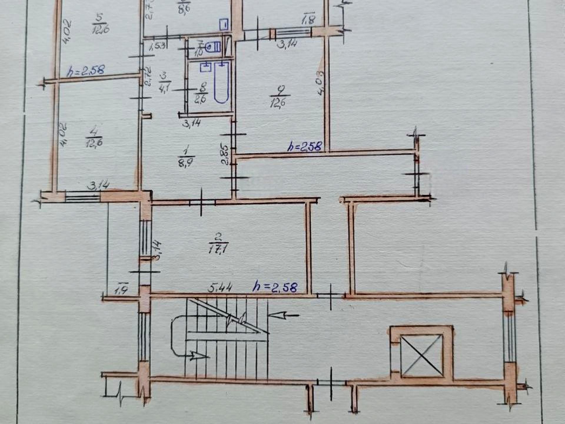 В квартире 4 комнаты, высота потолков 2.6 метра. Есть 2 балкона. Общее состояние квартиры - С ремонтом. Количество санузлов: 1. Работает без света - газ, отопление. Без комиссии