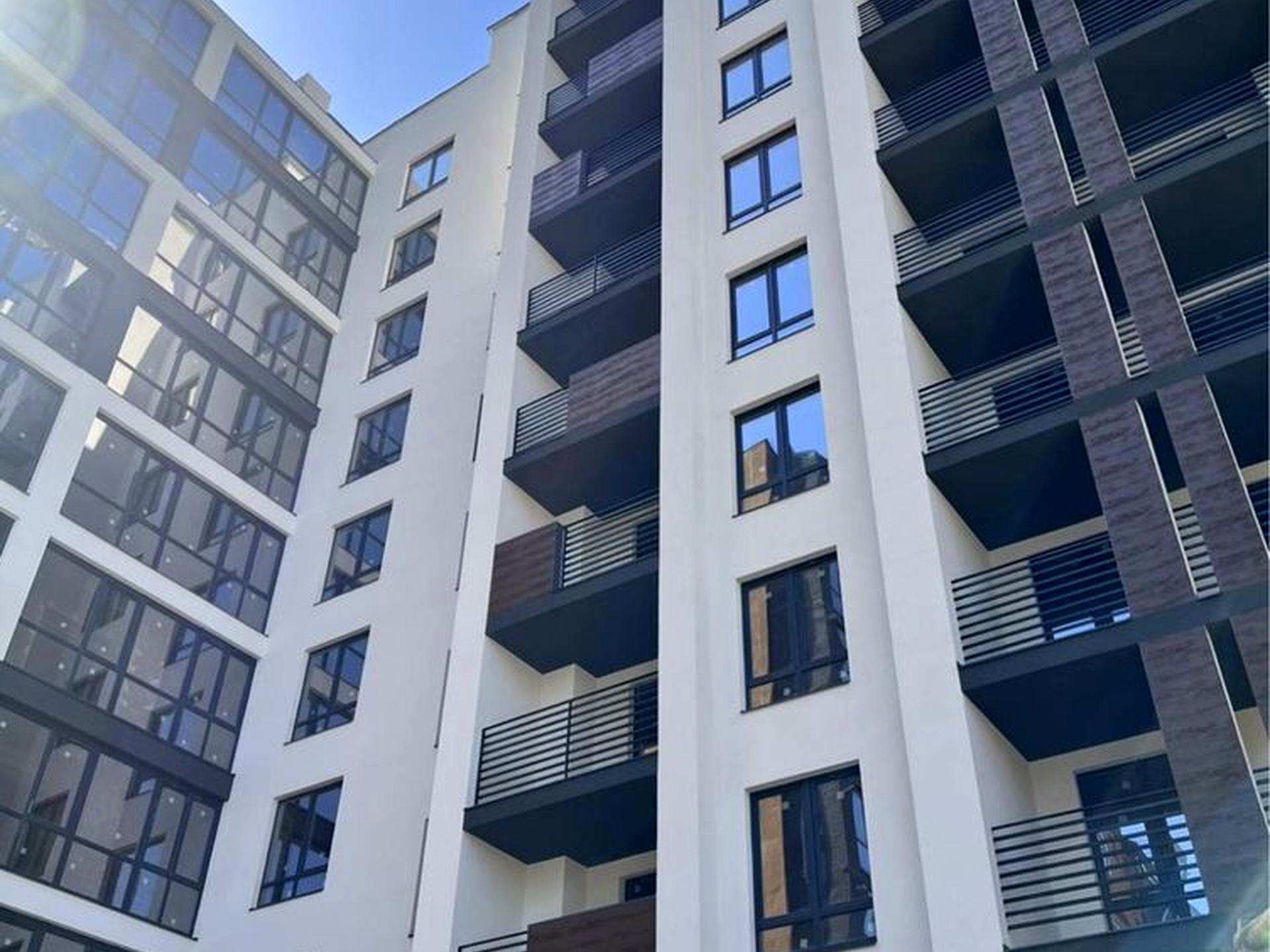 квартира не кутова, вигляд у двір, панорамні вікна, лоджія з кухні, стан від забудовника, штукатурка стін, котел, лічильники, розведення електрики, новобудова на етапі здачі, секція побудована, утеплена, ведуться внутрішні роботи, здача будинку весна 2026р