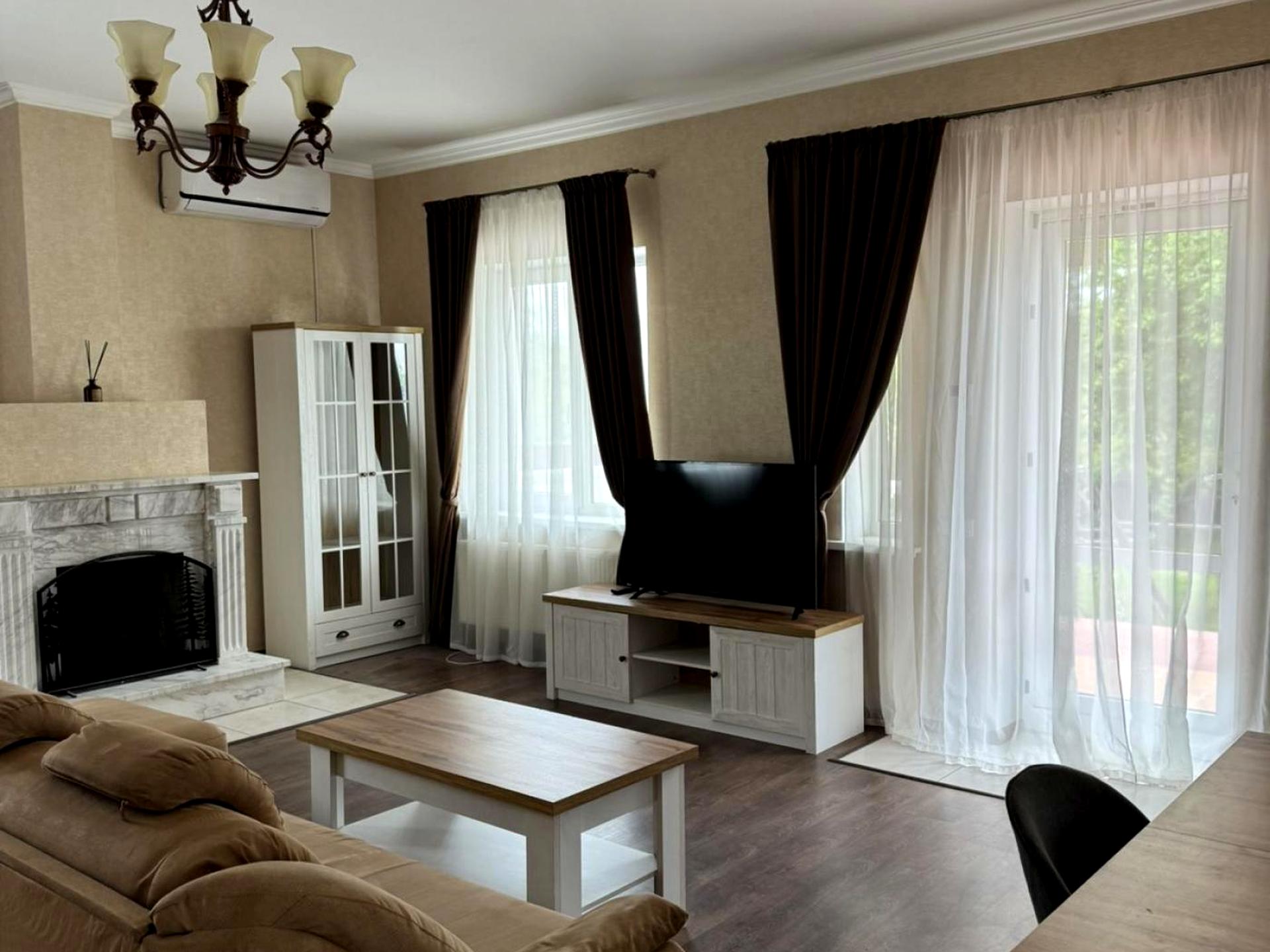 Обладнання • меблі • зручності: телевізор • душова кабіна • ванна • газова плита • газ • витяжка • інтернет • каналізація септик