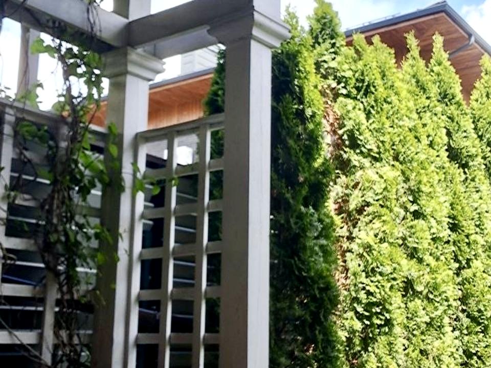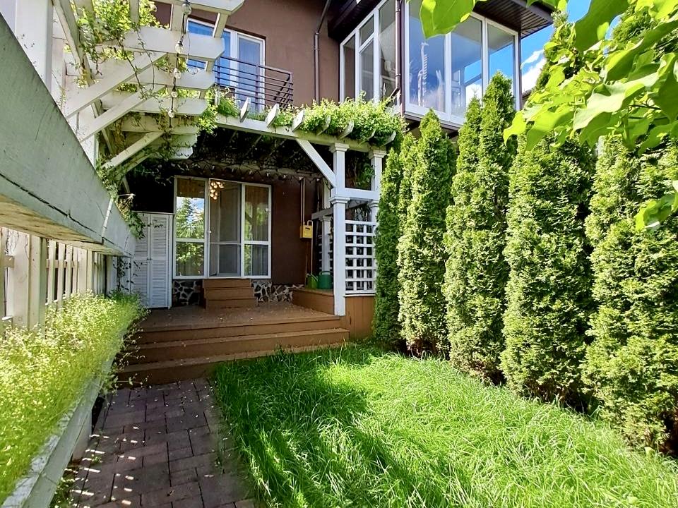 - Тераса у стилі Патіо, газон 15 кв.м. із автополивом, 7 дерев туї та 2 дерева магнолії