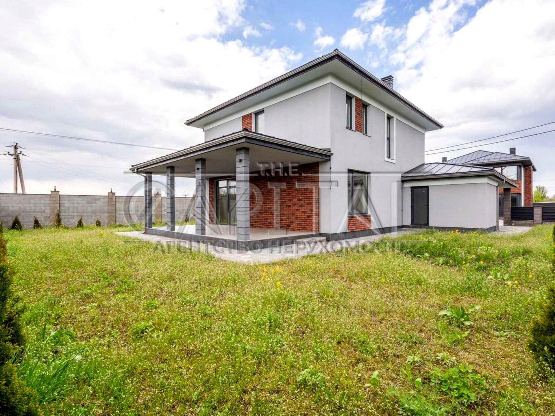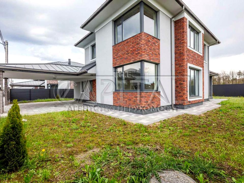 Ділянка 7 соток землі, велика крита тераса, навіс під машину, госп.блок. Будинок повністю огороджений з усіх боків, 2 виїзди із пропускними пунктами.