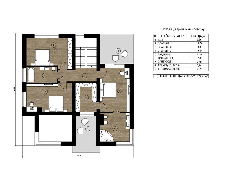 Загальна площа будинку 225м2