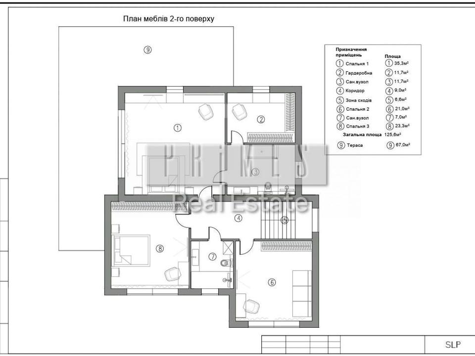 2 поверх - 3 окремі кімнати, вбиральня, 2 сан узли, тераса. Головна майстерня спальня зі своїм сан вузлом і гардеробною.