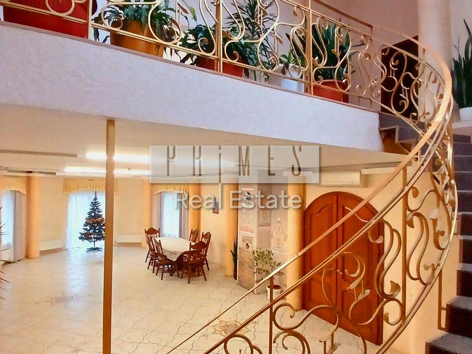Общая площадь 567 м2 из них 6 комнат, два больших зала, кухня, 2 санузла, прихожая, комната в цокольном помещении.