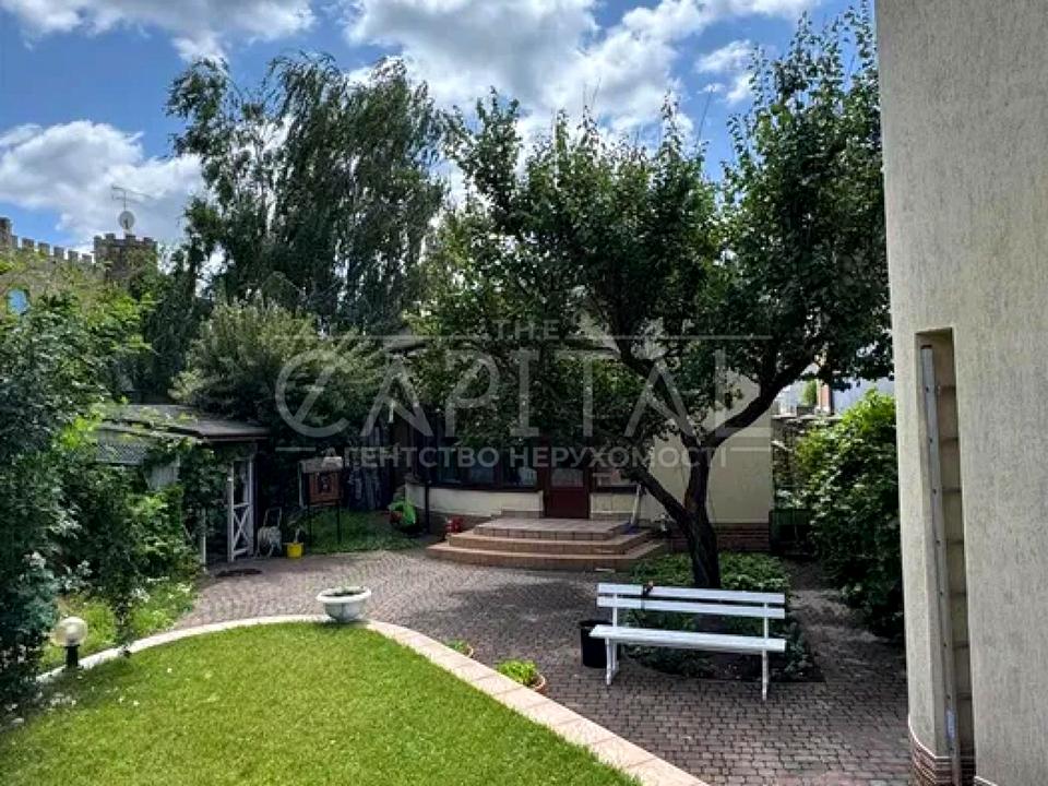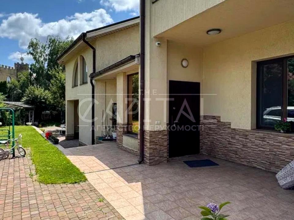 Ділянка 12 соток з ландшафтним дизайном на два рівні межує із зеленою водоохоронною зоною. Є прямий вихід до води, зона барбекю з альтанкою, окремий будинок сауни з басейном, власна свердловина, два окремі заїзди, гараж на 2 авто та простора гостьова парковка.