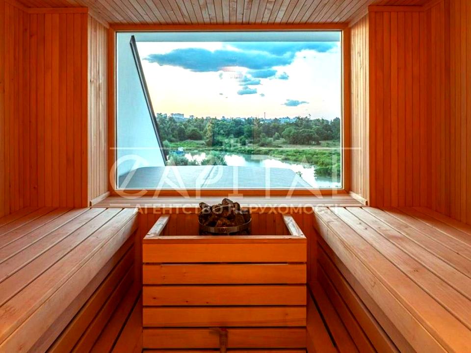 - САУНА з видовим вікном, окремий с/в, душ, передбанник з місцем для розміщення бігової доріжки.