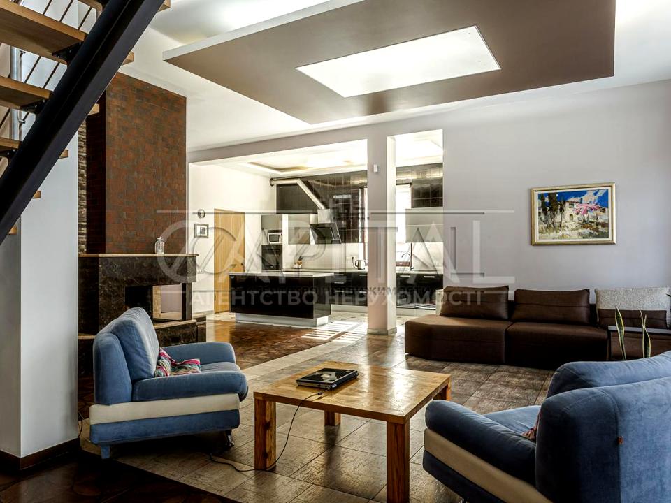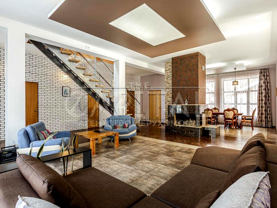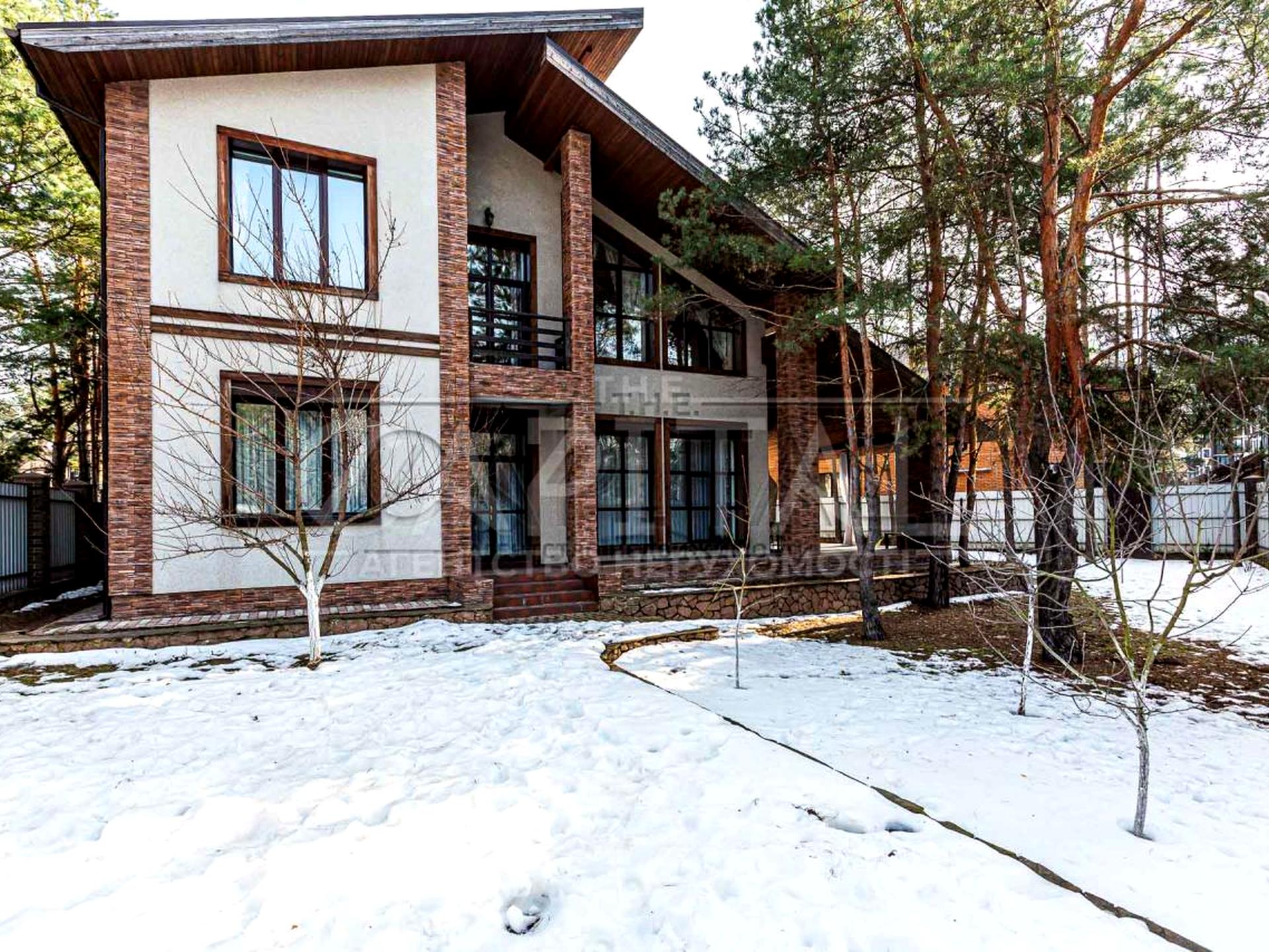 Будинок 2-х поверховий, 300 м.кв., 7 кімнат: 2 вітальні вільного планування, 4 спальні, кабінет, 3 санвузли, кухня-їдальня, пральна, бойлерна, вбиральня, камін, тераса, балкон, панорамні вікна в підлогу, високі стелі від 3.50 і від. У всіх спальнях 2-х спальні ліжка.