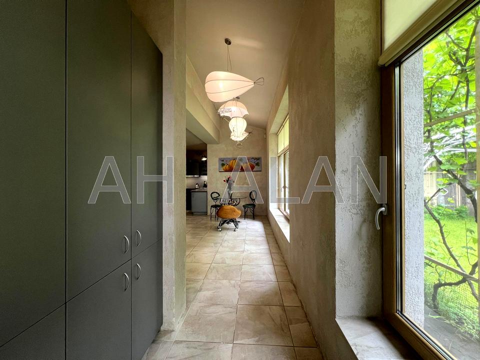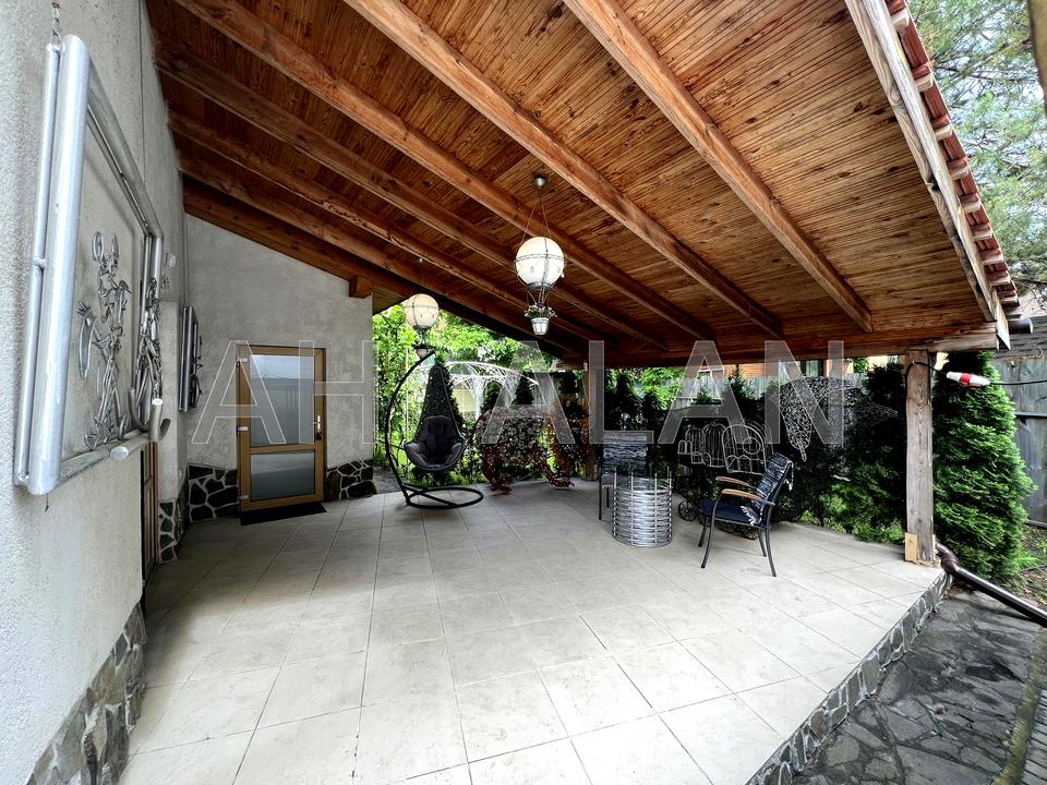 Двоповерховий таунхаус 150 м² + 35 м² критої облаштованої тераси. Будинок, 2 поверхи, 3 кімнати. Матеріал стін - цегляний. Під'їзд до будинку - асфальт. Площа ділянки 5 соток. Висота стелі 4 метра. Вид з вікон у двір. Планування кімнат Суміжно-роздільна. Газ природний. Холодна вода - свердловина, гаряча вода - газовий котел. Опалення котел газовий. У будинку 2 роздільних санвузла, туалет/ванна/душ.