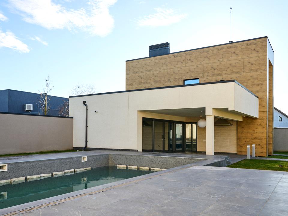 Здається в оренду стильний, повністю автономний будинок з басейном у закритому котеджному містечку «Блакитна Лагуна» (Осокорки).