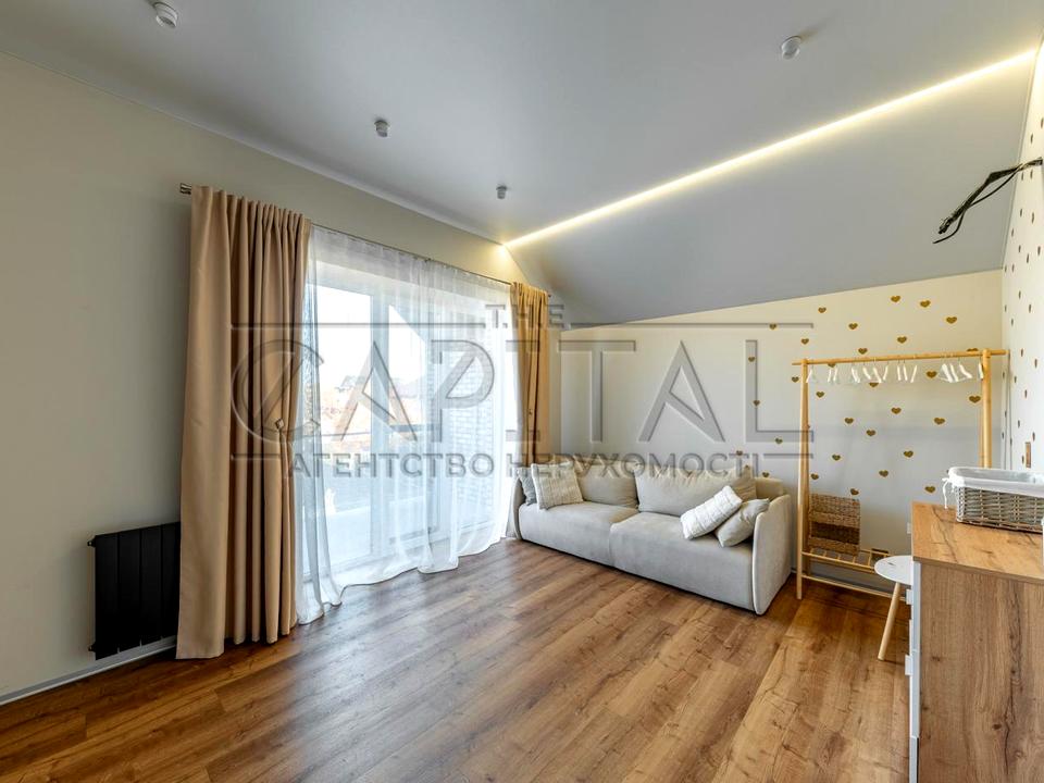 Життя у комфорті, безпеці та спокої — саме так почуваєшся в цьому сучасному будинку, розташованому в закритому котеджному містечку всього за кілька хвилин від центру столиці.