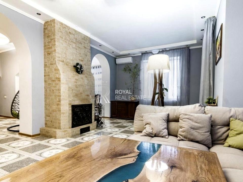 - Простора вітальня з каміном та виходом на терасу
