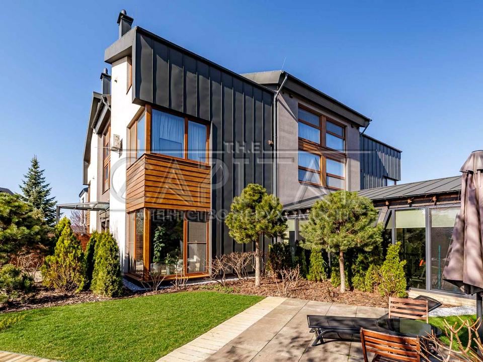 У закритому котеджному містечку «Коник» у Київ пропонується в оренду просторий триповерховий квадрохаус преміум-рівня. Локація поєднує абсолютну приватність, тишу та близькість до центру — всього 10 хвилин на авто.