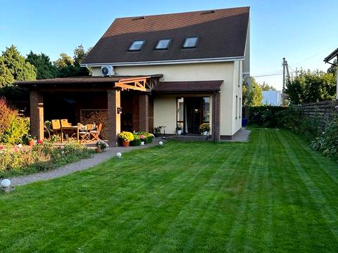Продається будинок із вражаючим садом та просторою ділянкою 30 соток. Загальна площа будинку 480 м², він має два наземних і два підземних поверхи. Будинок облаштований якісним ремонтом, меблями та технікою. У вітальні встановлений камін для затишку та додаткового тепла. Є тепла підлога, кондиціонери, фанкойл, система охорони Ajax, відеонагляд по периметру. Будинок складається з 5 житлових кімнат, окремої кухні, вітальні, 4 санвузлів, кількох гардеробних, пральні та технічних приміщень. У гаражі є місце для двох авто, а також облаштована відкрита парковка. Для автономного живлення встановлені газовий і електрокотли, генератор на 6,5 кВт, батарея на 6 кВт, стабілізатори напруги. Комунікації...
