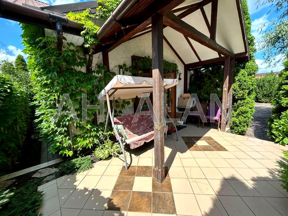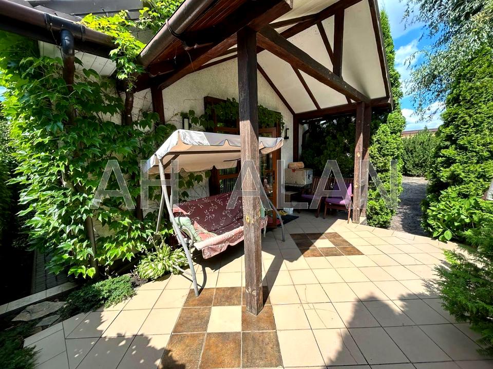 Продаж двоповерхового цегляного будинку (частина будинку) зі своєю ділянкою соток. Будинок знаходиться за 7,5 км від метро Славутич. Складається з підвал з вікнами: 2 кімнати, басейн, електрична сауна, душова з санвузлом, підсобна кімната; 1 поверх: передпокій з шафою, кухня 17.2 м2, санвузол, вітальня 24 м2 з виходом на веранду; 2 поверх: спальня, вбиральня, санвузол з душовою кабіною. Техніка: телефізор, варильна газова панель, духовка, посудомийна машина, акустична система, чайник, мікрохвильова піч, роутер, пральна машина, холодильник, 2 кондиціонери, витяжка. На підлозі у цоколі, вітальня та кухня-плитка, спальня-ламінат. Фундамент-бетон, стіни-цегла, перекриття комбіноване, дах металочерепиця, басейн-бетонна чаша, паркан-цегла, вікна трикамерні металопластикові. Висота стелі 1 поверх від 3 до 4.6 м, 2 поверх 2.7 м. Вікна виходять на фасад будинку. Ділянка доглянута, навіс на 1 авто, ворота автоматичні, госп. приміщення. Встановлено бензиновий генератор, акб на газовий кател. Комунікації: вода свердловина з фільтрацією, каналізація септик, світло (лічильник день/ніч), опалення газове, стоїть безперебійник з АКБ на роутер та газовий котел. Встановлено датчики руху. Планується заміна газону на задньому подвір"ї .Продається з технікою та меблями, господарським інвентарем. Дуже пристойні сусіди. Дорога асфальтована. Інфраструктура: зупинка громадського транспорту 100 метрів, футбольне поле, льодова арена, басейн, вихід до річки Дніпро, магазин Фора, мийки, ресторан, нова пошта тощо. По вулиці відео спостереження.