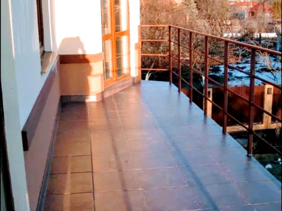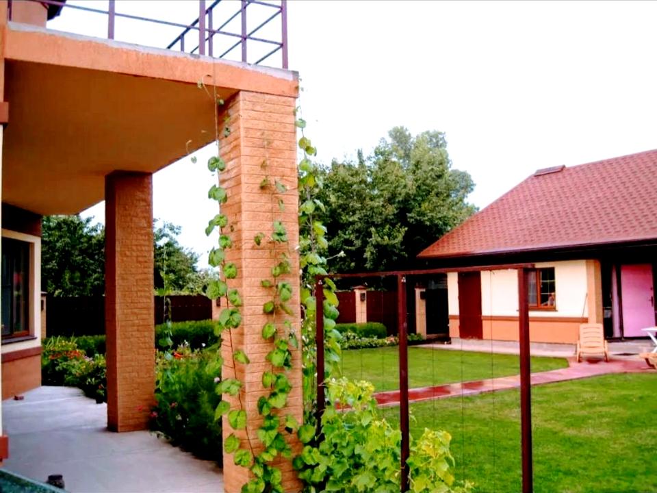 Оформлен как подсобное помещение и в общий метраж не входит. Налог платить не нужно. Независимое отопление, свой сан. узел, подогрев пола, бойлер. Отдельная кухня. Крыша – финская , битумная черепица, немецкие окна «Кемерлинг», большой чердак - 68 кв.м.