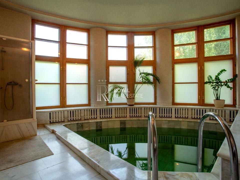 - Зручності: сучасний спортзал, басейн, лазня, дві каміни для затишку.