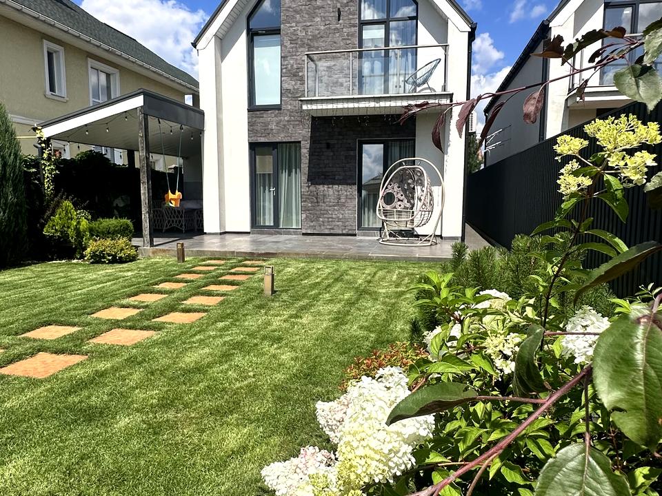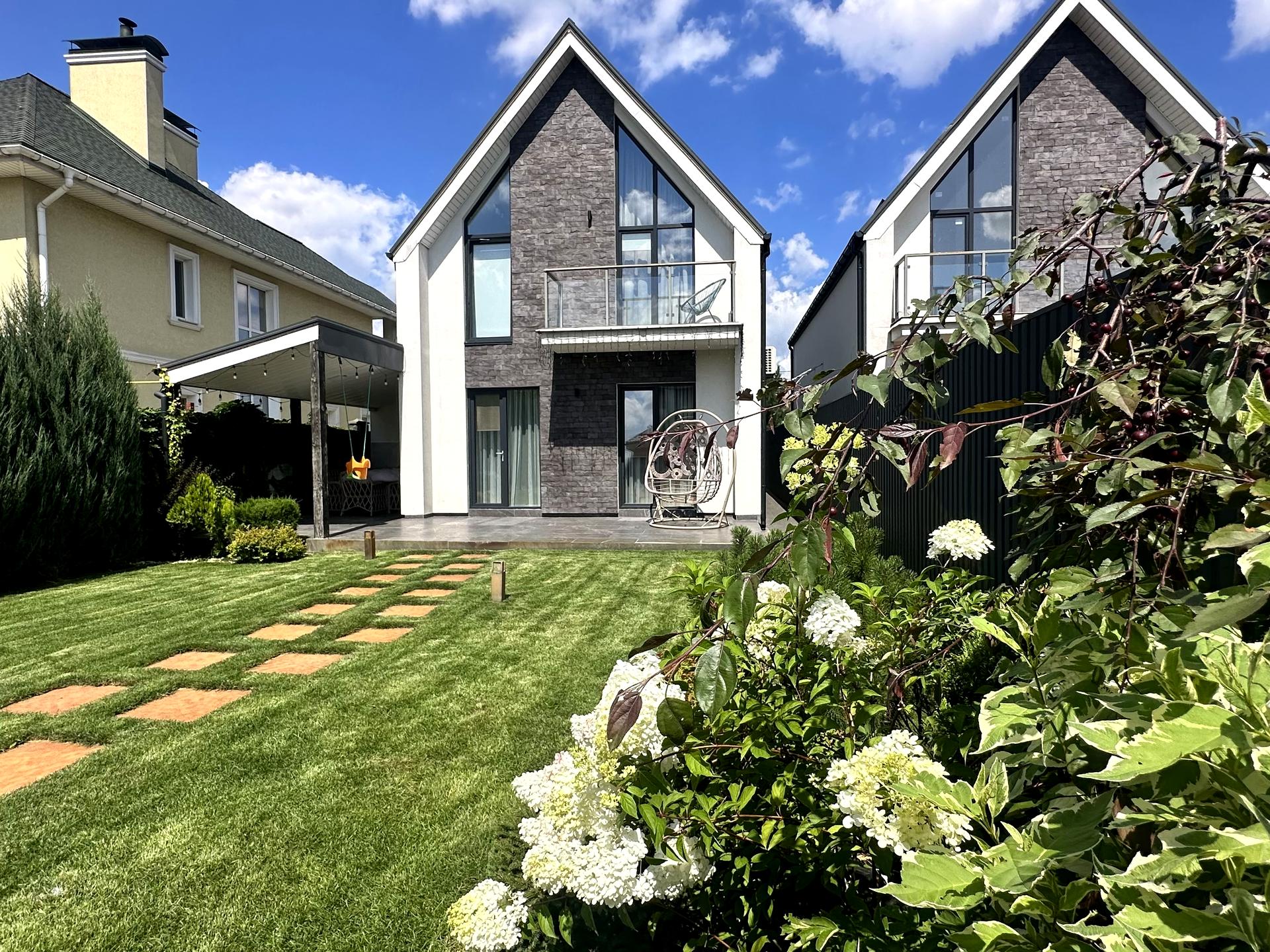 Пропонується затишний 2-поверховий будинок площею 141 м² у закритому котеджному містечку з охороною. Ділянка 4 сотки з ландшафтним дизайном, автоматичним поливом та підсвіткою.