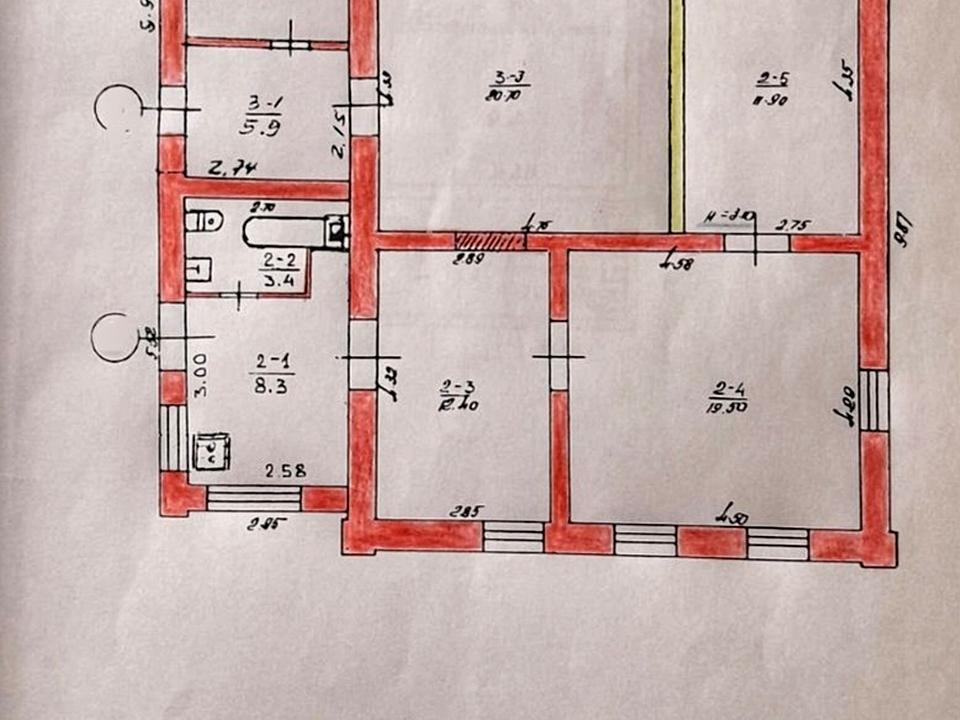 6 кімнат, 3 кухні, 3 санвузли.