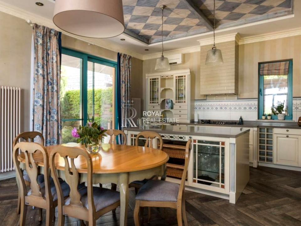 Дизайн будинку виконаний із застосуванням елітних матеріалів, імпортною побутовою технікою та меблями таких виробників як Rational, Alberta, Grange, Guanfranco Ballerini та інше.